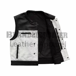 Elevate your biker style with our Men Motorcycle Two-Toned Black and White Leather Vest, a premium waistcoat designed for riders who demand both fashion and function. Made from high-quality genuine leather, this vest showcases a bold two-toned black and white design, giving you a striking look that stands out on and off the road.